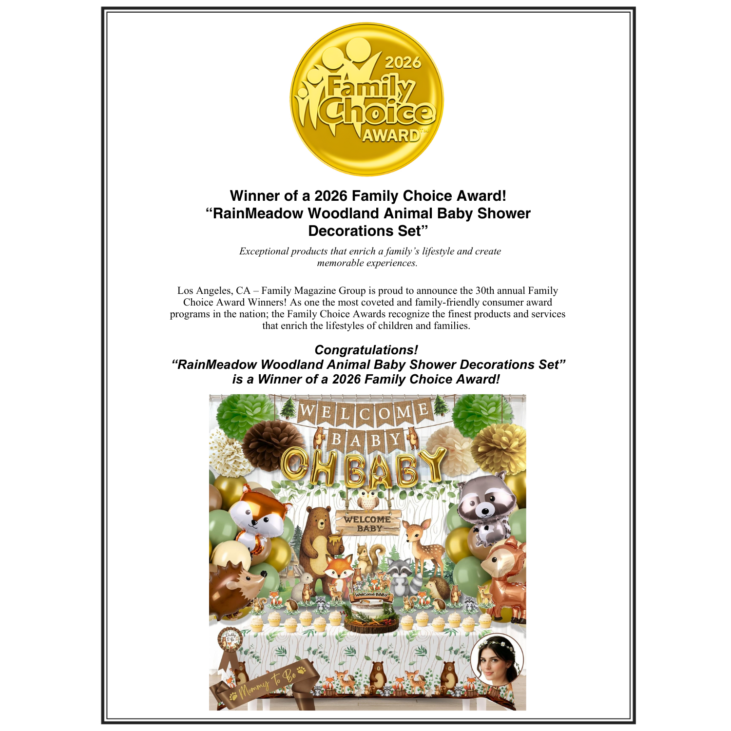 RainMeadow Woodland Animal Baby Shower Decorations - Forest Animal Theme Kit for Boy or Girl with Backdrop, Balloons, Banners, Tablecloth