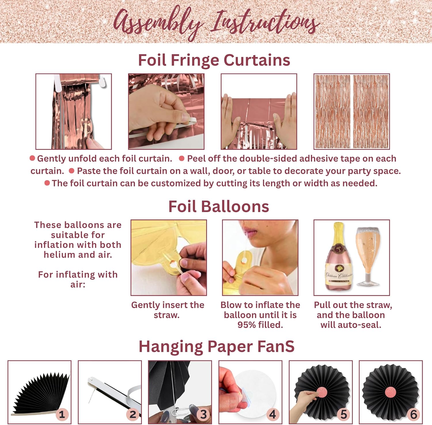 • Rose Gold Foil Fringe Curtains – glamorous finishing touch for your party room