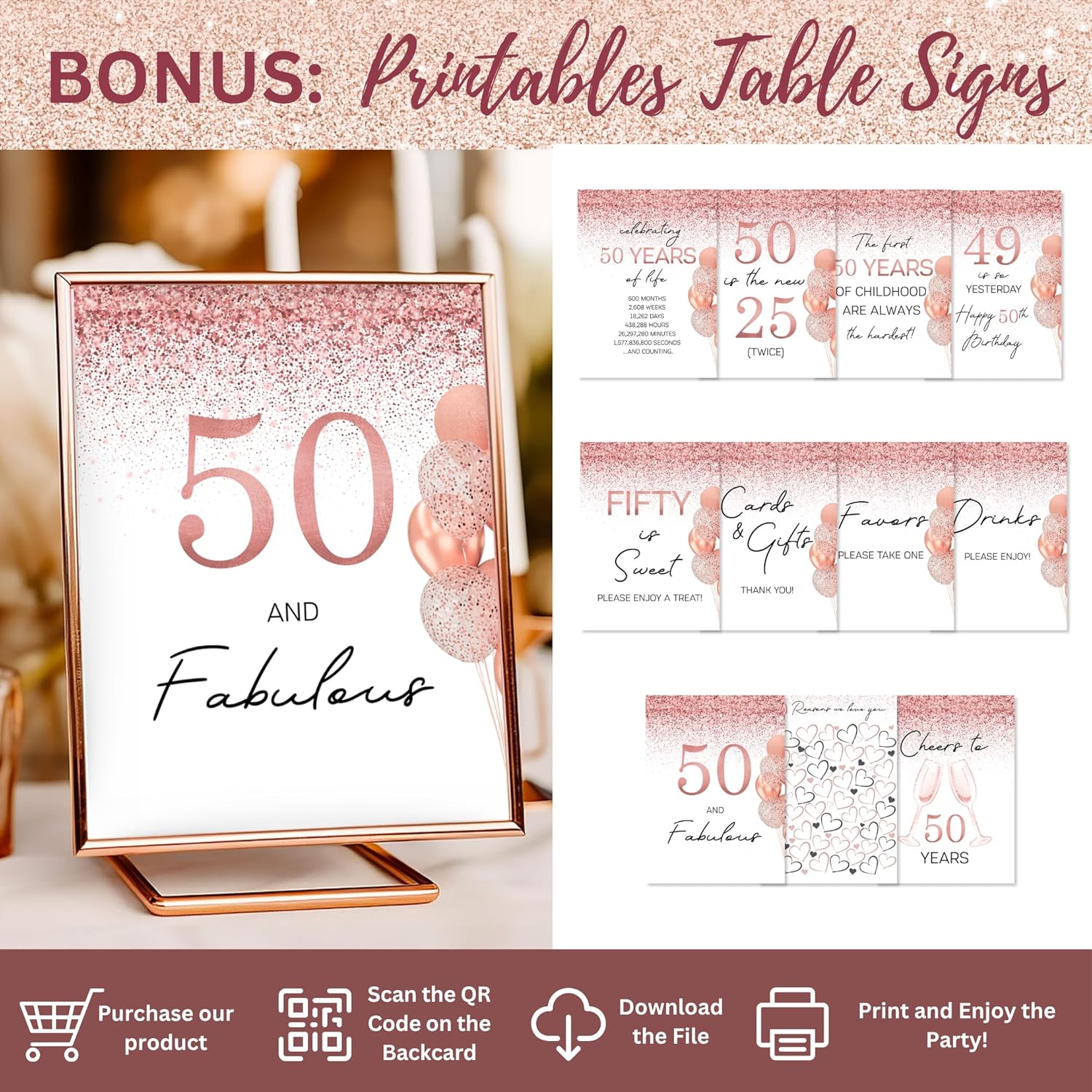 • 30 Latex Balloons with fun texts like "Hello Fifty" and "50 Fabulous"